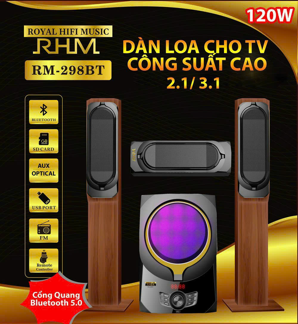 BỘ LOA 2.1 RHM RM-298BT CÔNG SUẤT 100W, KẾT NỐI CỔNG QUANG, BỘ LOA CHUYÊN DÙNG CHO SMART TV